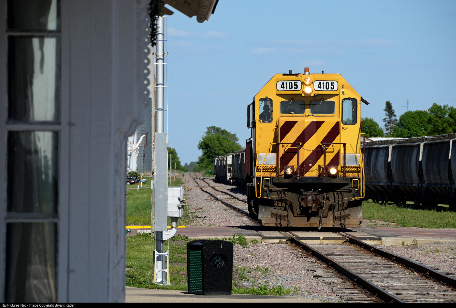 There's no operator or agent in the window to greet trains, such as this single locomotive moving westbound, but at least the former Minneapolis & St Louis Railway depot still stands in Fairfax, MN. Perhaps more amazingly, the railroad is still active, owned by the Minnesota Valley Regional Rail Authority, which is made up of the counties along the line, and operated under the Twin Cities & Western subsidiary Minnesota Prairie Line.