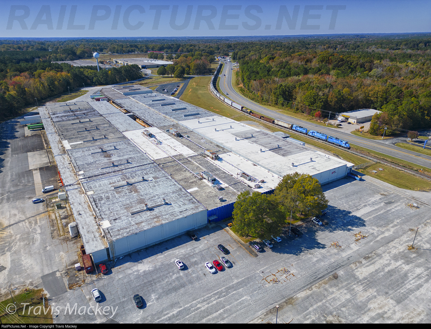 Lancaster & Chester train 14 passing the Springs Warehouses in Fort Lawn