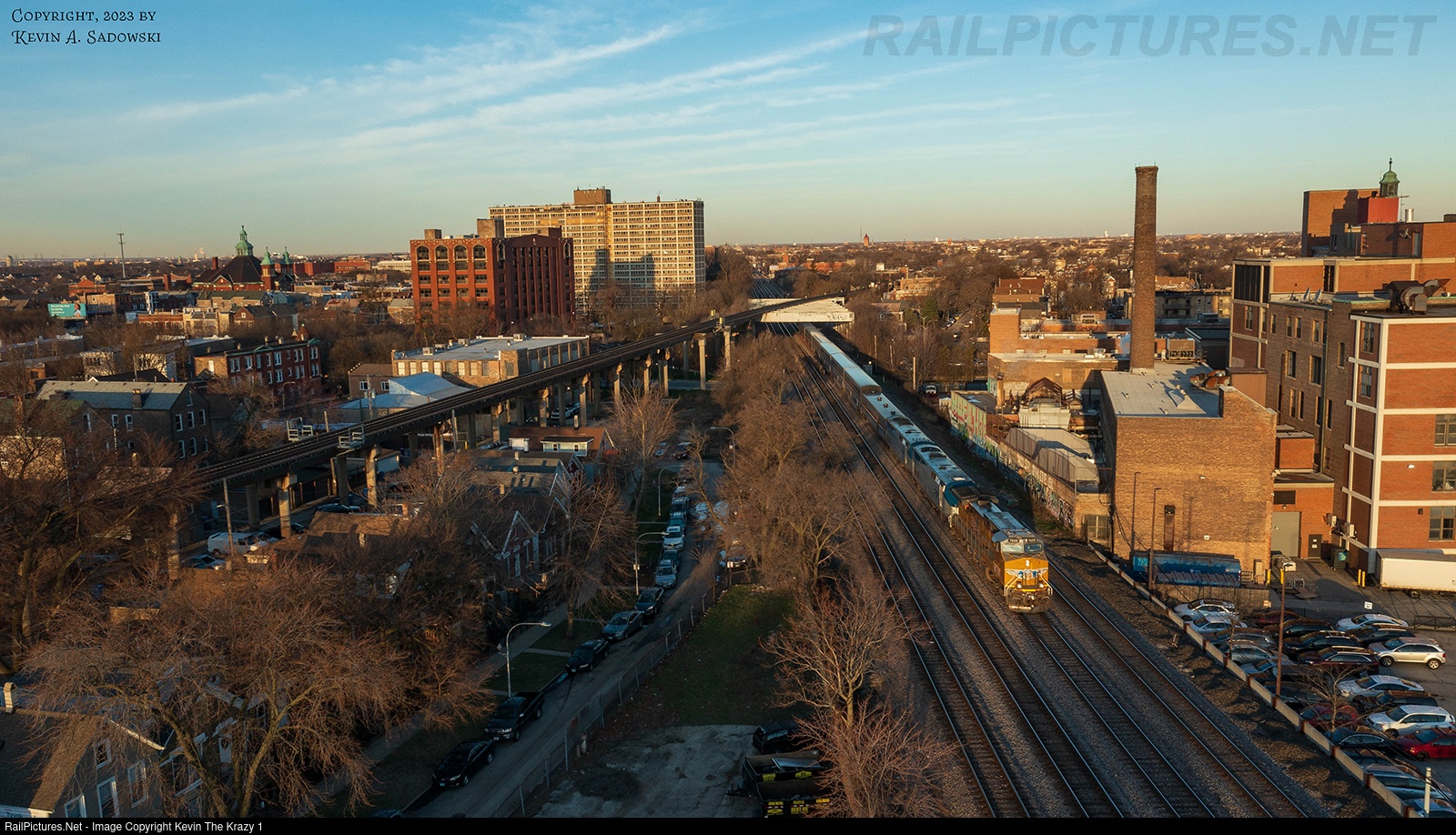 The eastbound California Zephyr is seen passing through the Little Village neighborhood of Chicago running just over 16hrs late with UP 7222 leading the way.