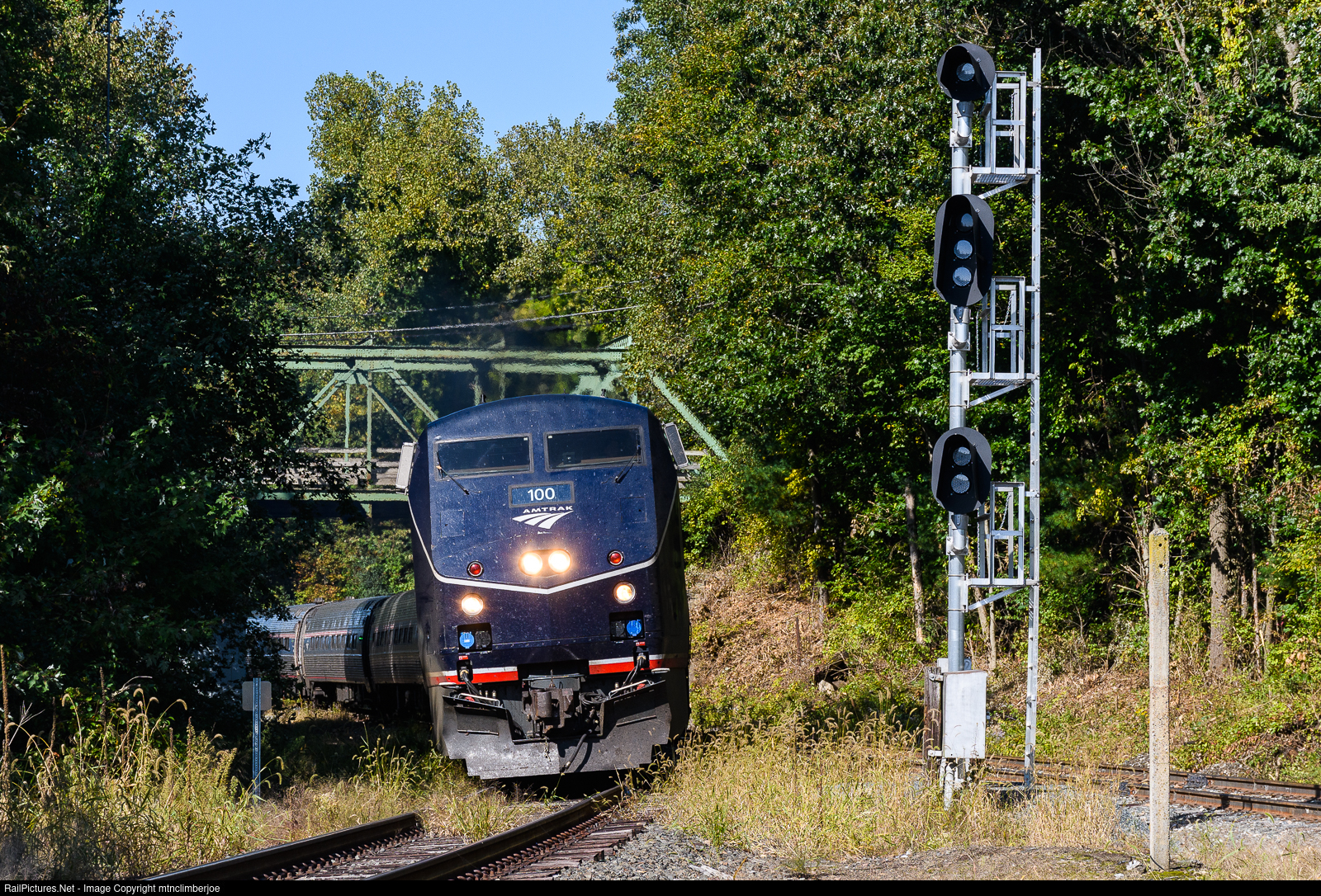 RailPictures.Net Photo: AMTK 100 Amtrak GE P42DC at Northfield, Massachusetts by mtnclimberjoe