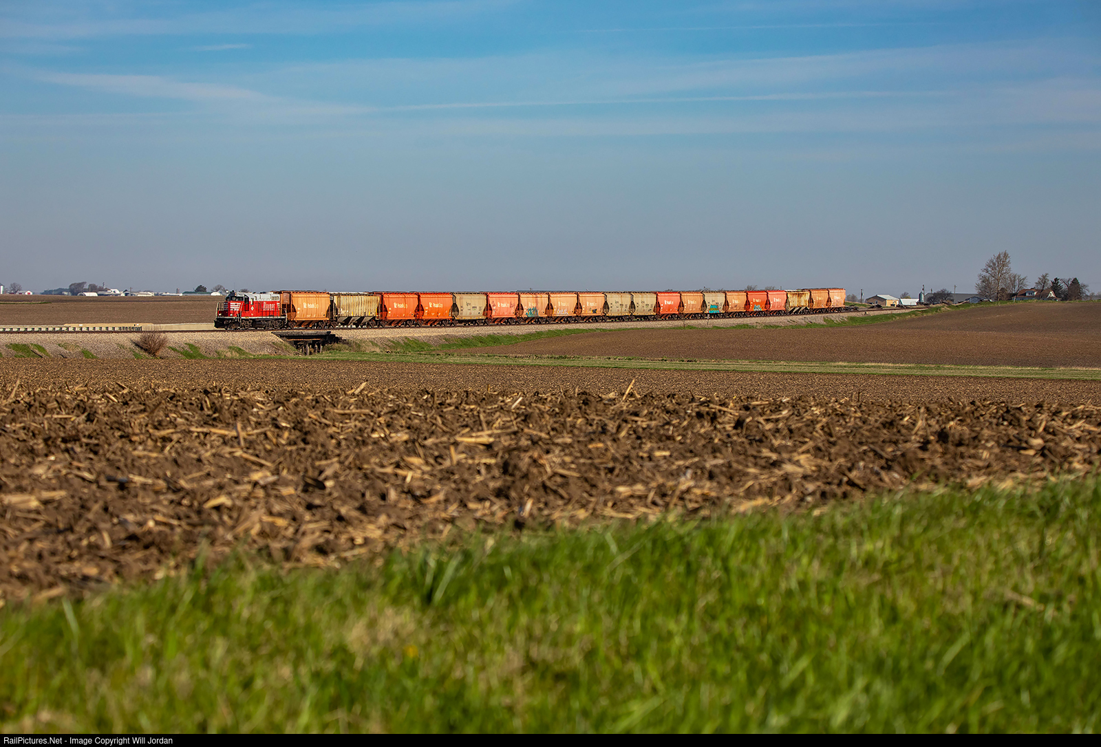 A Bloomer southbound cruises through the farmland surrounding the old Wabash main.