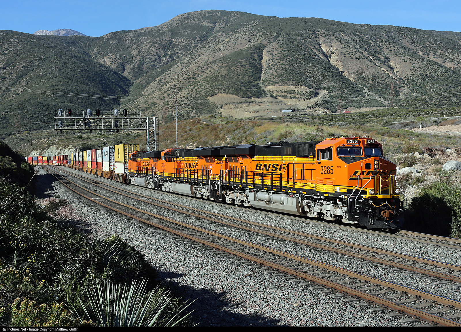 RailPictures.Net Photo: BNSF 3285 BNSF Railway GE ES44ACH at Blue Cut, California by Matthew Griffin