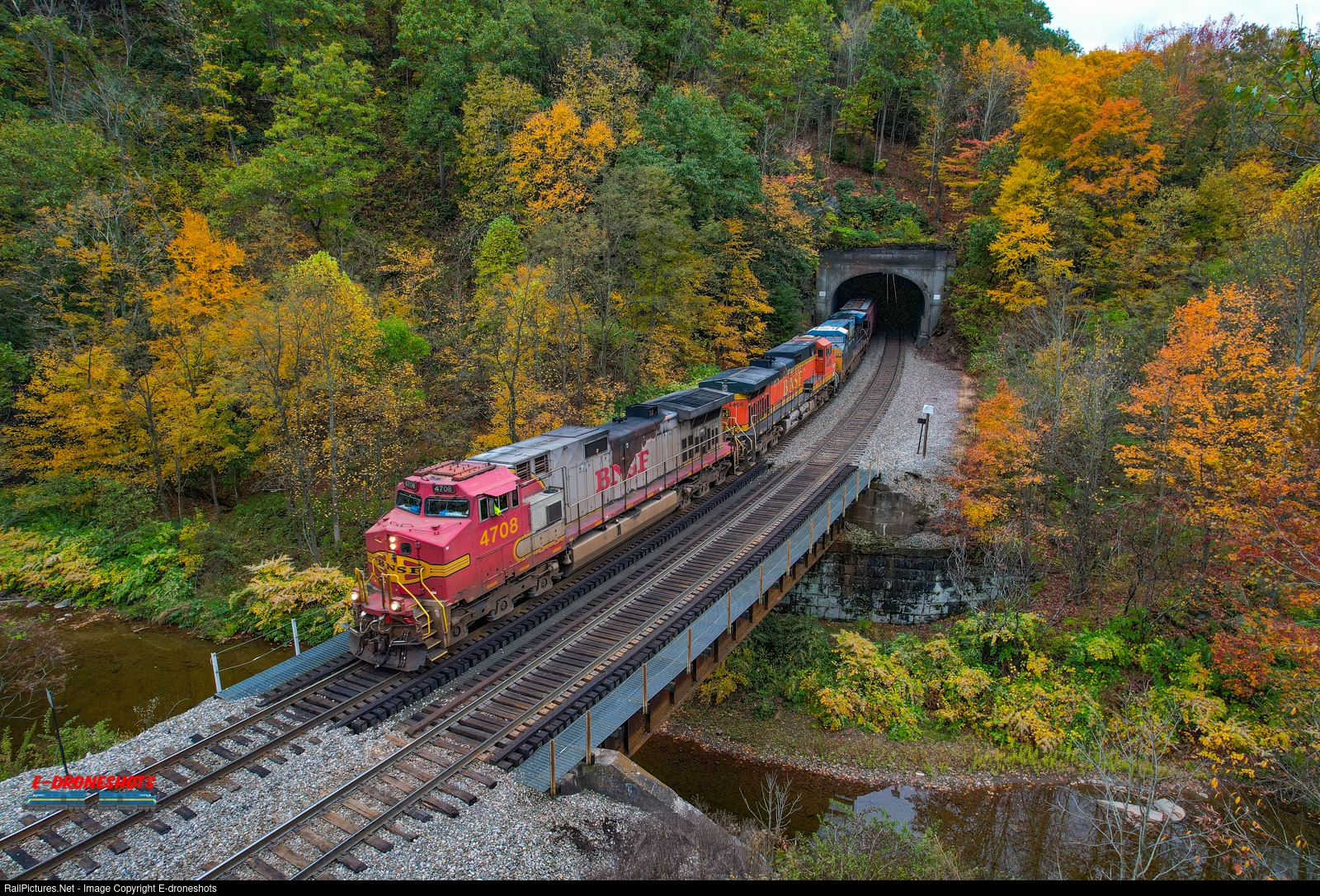 RailPictures.Net Photo: BNSF 4708 BNSF Railway GE C44-9W (Dash 9-44CW) at Falls Cut, Pennsylvania by E-droneshots