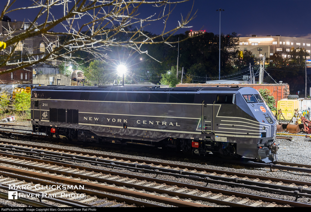 Lightning Striped. The third MTA Metro-North Railroad 40th Anniversary "heritage unit" was outshopped from North White Plains on the night of Tuesday November 7, 2023. The lightning stripes of New York Central will soon roll again on the its former road as P32AC-DM 211 has a very sharp new wrap. The locomotive is seen near the former NYC tower at MO in Mott Haven in the Bronx, New York on the way to the Croton Harmon shops.