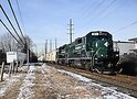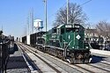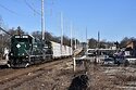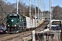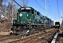 RS 71 heading upgrade out of the LIRR Greenlawn Station to Kleet Lumber in Huntington Station. Progress Rail EMD 20B 301 & 300 pulling four loads through Broadway in Greenlawn.