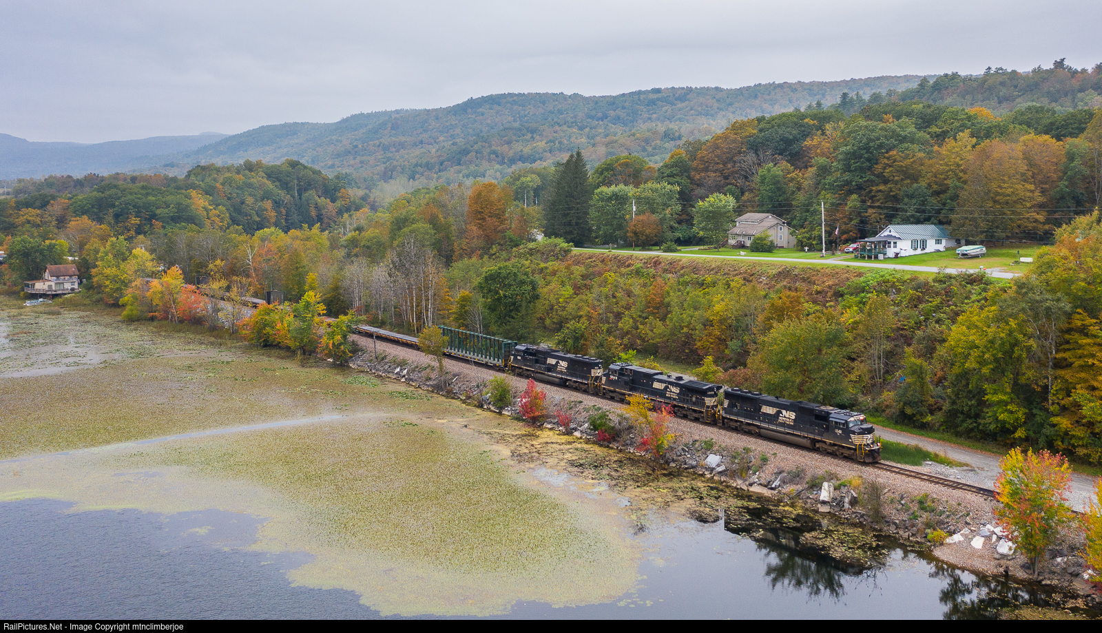 | The fall colors are just starting to show along the banks at the south end of Lake Champlain as a trio of NS units lead the run through train as CPKC 929 through Dresden, New York. This train runs over NS from Binghamton to Saratoga Springs where it gets on to CPKC, where it heads north to Rouses Point to then run over CN to Montreal. |