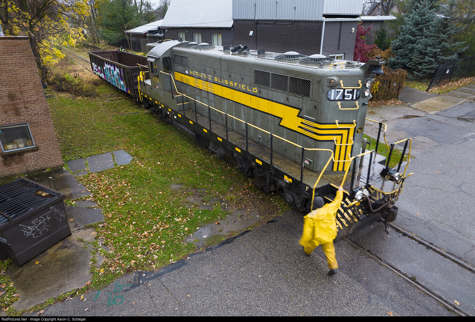 | The ADBF 1751 just clears Beaver Street as it shoves an empty Gondola south on the Old Town Spur for Friedland Industries. An extremely rare move as this spur sees only this action Once a Year. The track is FRA Excepted and Exempt so it must be inspected and cleared prior to the move. Each crossing is protected by employees on the ground prior to fouling the street. |