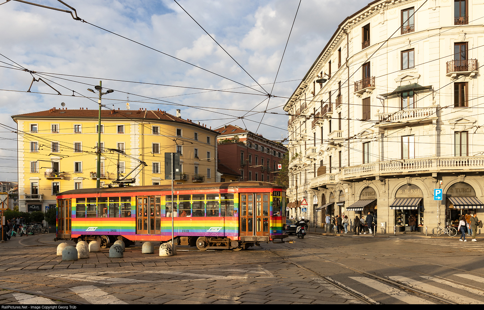 | "Ventotto" (year of construction 1928) streetcar # 1813 of the ATM Milano running on the line 10 from Viale Lunigiana (near Milano Centrale) to Piazza XXIV Maggio at the Piazzale Stazione Genova. The Ventotto series is based on the Peter Witt cars built in the United States from 1914 onwards. A total of 502 of this "1500 series" were built between 1927 and 1930 and about 150 reconstructed since 2010 were still dominant in the streets of Milan. |