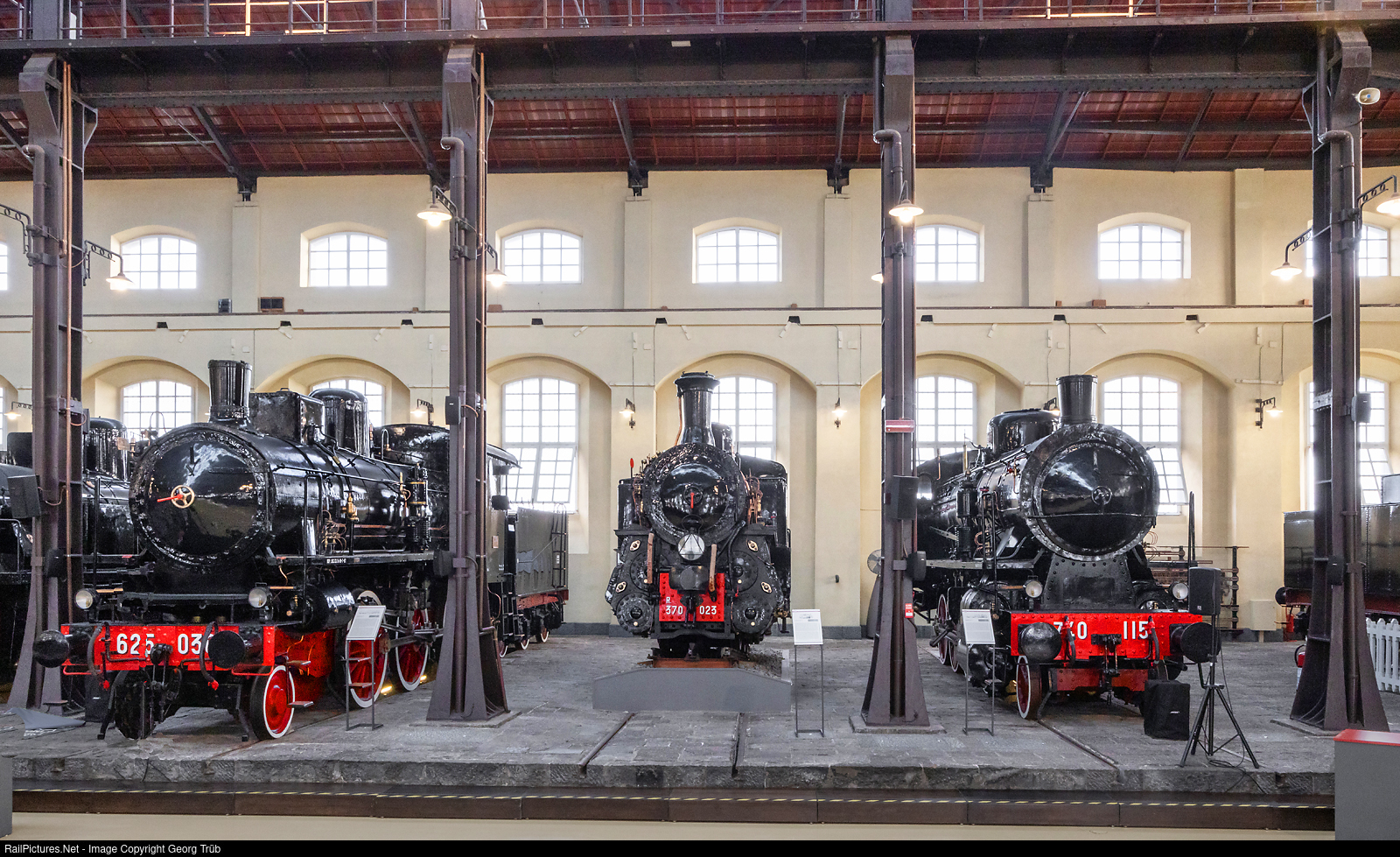Steamlocomotives of the Ferrovie dello Stato exhibited in the railway museum of Pietrarsa near Naples. From left to right: 625 # 030, a 2-6-0 passenger and freight train steamlocomotive. The 625s constituted one of the most numerous groups in the FS Park with 188 produced and 153 obtained by reconversion. Capable of reaching speeds of 80 kilometers per hour, the 625s would be renamed "Misses" because of their elegance in lines and the typical "hips" they assumed while running straight ahead. R 370 # 023. The R.370 group steam locomotive was a three-axle (locotender), coal-fueled locomotive that the State Railways built for service on Sicily's narrow-gauge lines with rack-and-pinion routes.Locomotives of the R.370 group were designed and built beginning in 1909 in anticipation of the coming into operation of Sicily's narrow-gauge railways serving the sulfur mining basins of the provinces of Enna, Caltanissetta and Palermo, which were then very important from the mining and economic point of view. Their first use was in conducting convoys for miners and minerals from the sulfur basins of Lercara, Cianciana, Grottacalda and Floristella. They were used mainly on the lines: Dittaino-Piazza Armerina-Caltagirone Dittaino-Assoro-Leonforte Agrigento-Naro-Licata railway Lercara-Filaga-Magazzolo railway Filaga-Palazzo Adriano railway 48 locomtives of this type were built from 1911 by Costruzione Mecchanice di Saronno, the gauge is 950 mm, with Strub cogwheel system. 740 # 115: 2-8-0 freight train locomotive built 1911 to 1923 in a series of 470 with about 1000 Hp.