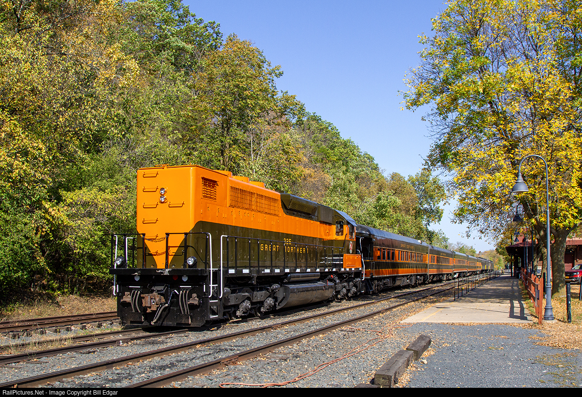 The Great Northern comes to life on the Osceola & St. Croix Valley Ry. based in Osceola, WI, featuring a restored 1916 era Soo Line depot on the former Soo mainline between Minneapolis & Sault Ste. Marie, ON. The trackage is now owned by CN and reaches a Dresser, WI ballast pit. The equipment is owned by the Minnesota Transportation Museum and GN 325 received its original colors earlier this year. It had been in BN paint. GN was a long hood front railroad through their order for GP20s. They went low hood and short hood front with the GP30. This long hood view would have been a rare if ever occurrence on a real GN passenger train, but fun to see at least once.