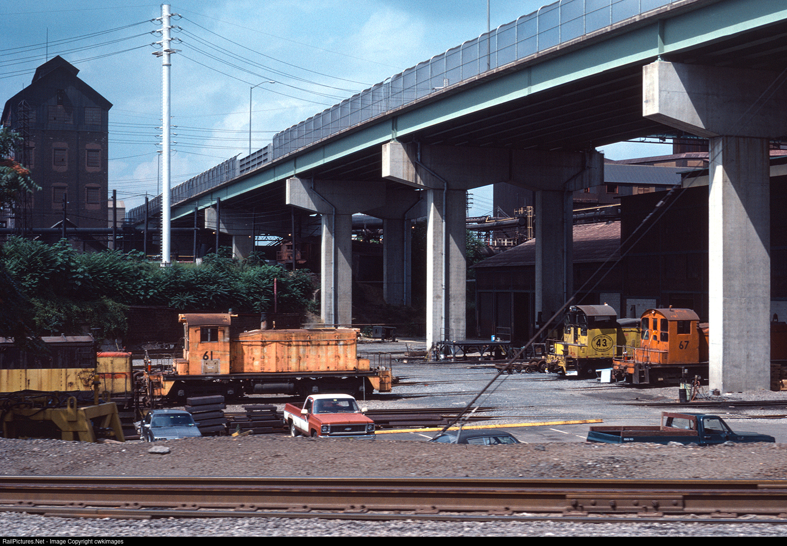 | PBNE 43 sits among other power at Bethlehem Steel's engine house in Bethlehem, PA. Tim Howeter photograph, collection of Colin Kund. |
