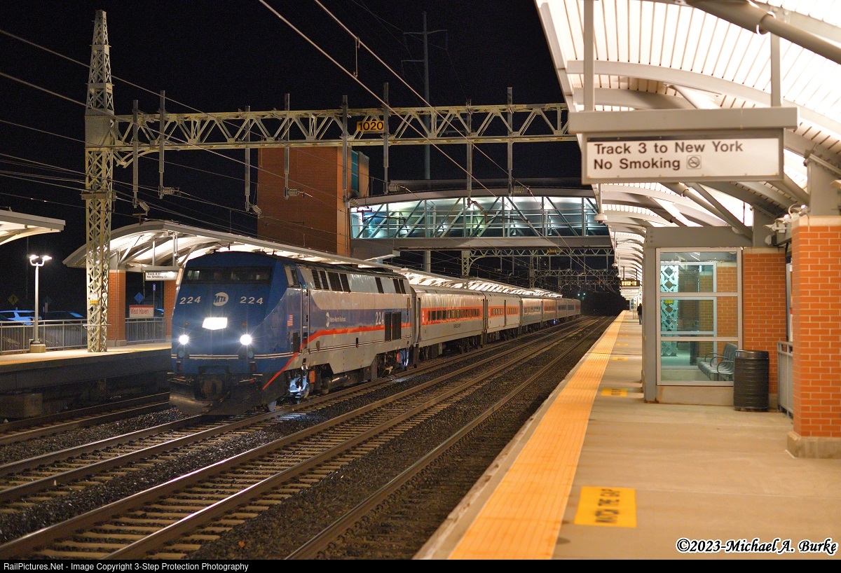 A Metro-North non-revenue also commonly referred to as a deadhead, is running as train 5590 from Stamford to New Haven, as it bypasses West Haven Station on track 2 on Saturday night November 18, 2023. The maxi-bomb is going to New Haven Yard for fuel as the servicing facilities in Stamford were temporarily out of service. Catching a diesel set on one of the middle tracks doesn't happen often. When they do show up as revenue trains, eastbounds make their stops on track 4 coming from Grand Central or westbounds on track 3 from New Haven.