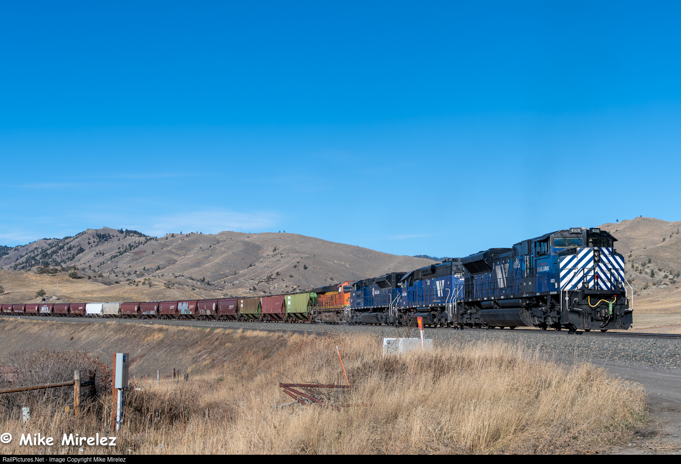 MRL 4305 helps a loaded grain train up the east side of Bozeman Pass.