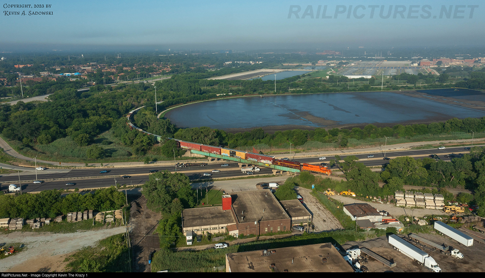 A late running AF8 shoves out of the Port of Illinois and across the Bishop Ford expressway.