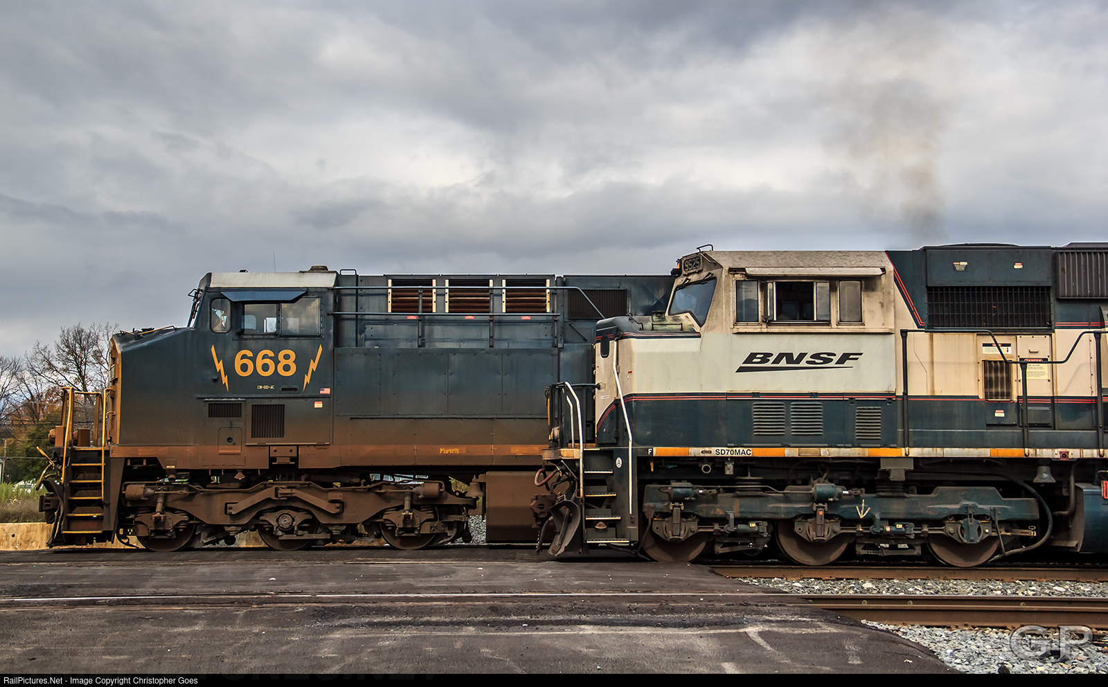 On the west end of CSX DeWitt Yard, G415 an empty grain train lead by BNSF 9525, prepares to depart while CSX 668 in-charge of an intermodal thats just arrived creeps up alongside and is about to begin work in the yard.