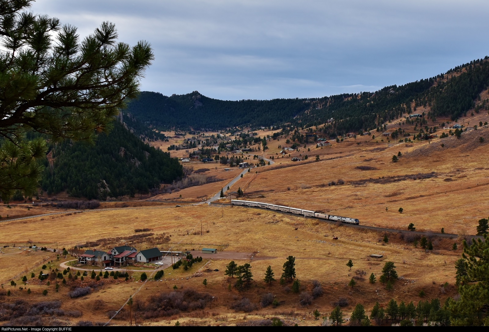 | The vantage point on the top of the hill next to Tunnel #1 provides a view of the California Zephyr as it runs through Coal Creek Canyon, Colorado. |