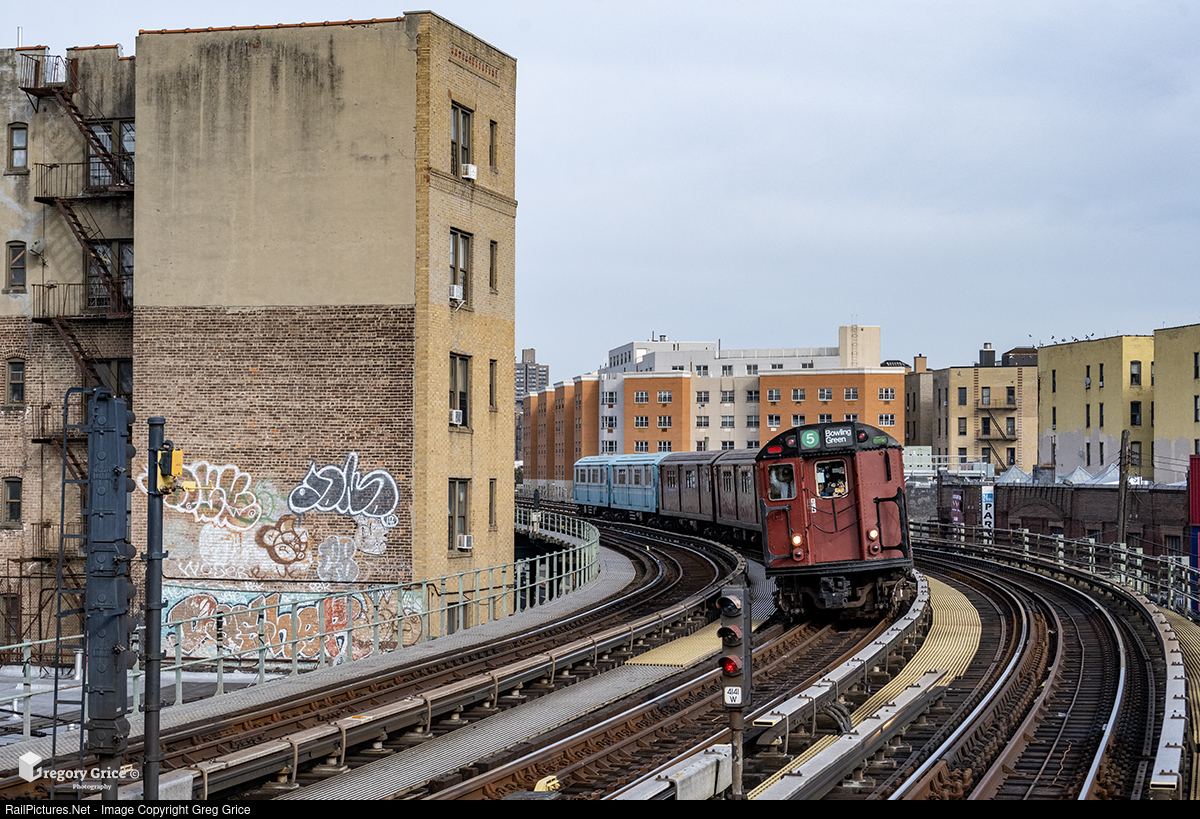 On the morning of November 4th, 2023, New York City Transit's St. Louis Car Company R36WF #9586 lead a 6 car vintage train of Redbirds & Bluebirds down the IRT White Plains Road Line around the Bronx Park East curve in the Bronx borough of NYC. The train took passengers on a nostalgia ride round trip between South Ferry Station in Manhattan and 239th Street Yard in the Bronx.