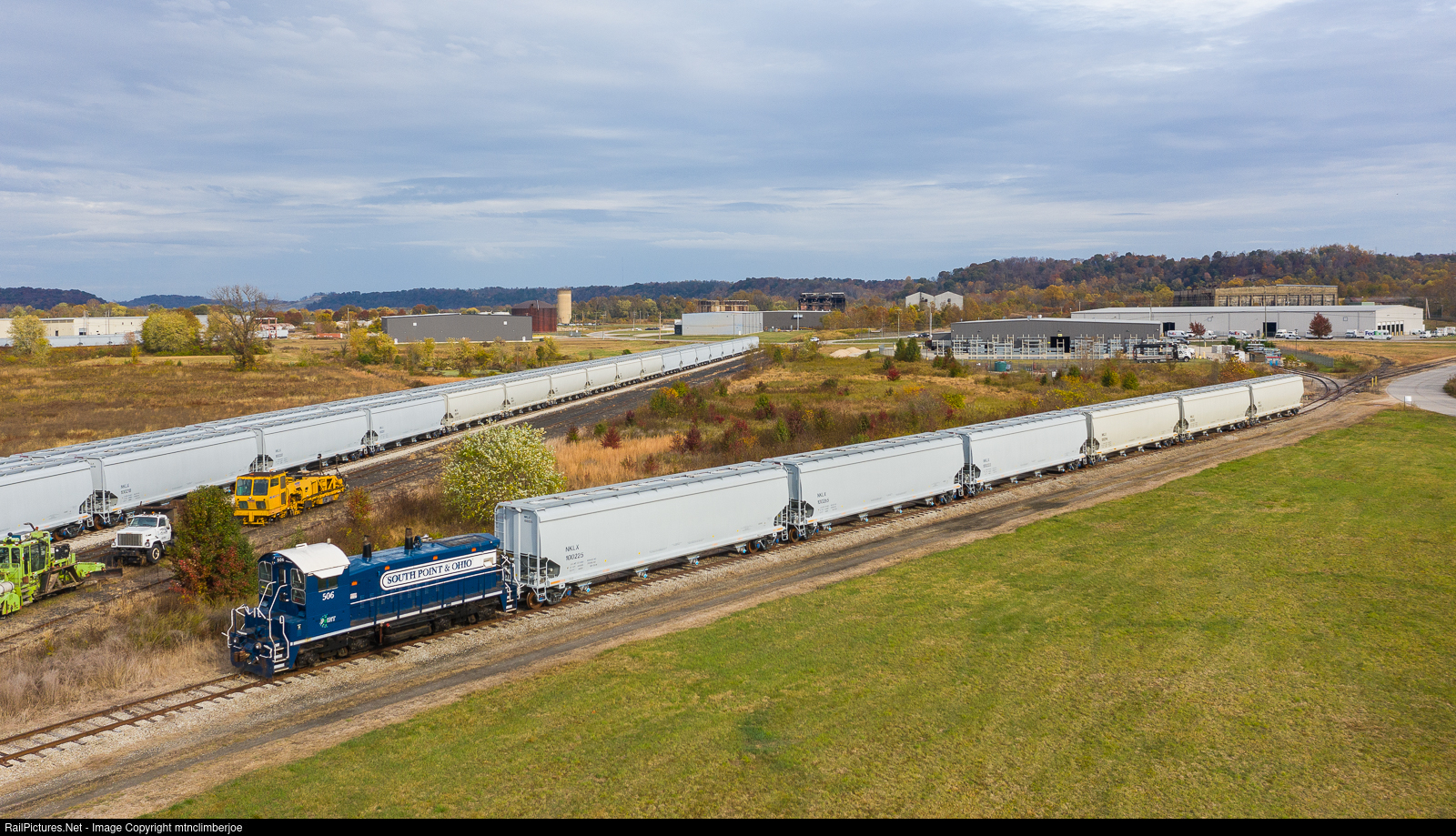 | A South Point & Ohio Railroad SW1200RS is tied on to a string of covered hoppers to move around the yard, catching a brief window of sun on an October Friday morning. Owned by Regional Rail LLC, the South Point & Ohio Railroad operates 5 miles of track to serve an industrial park in South Point, Ohio and has an interchange with the NS Kenova District. |