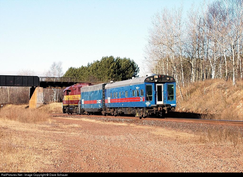 A short CN engineering train rolls north on the former DM&IR checking track.