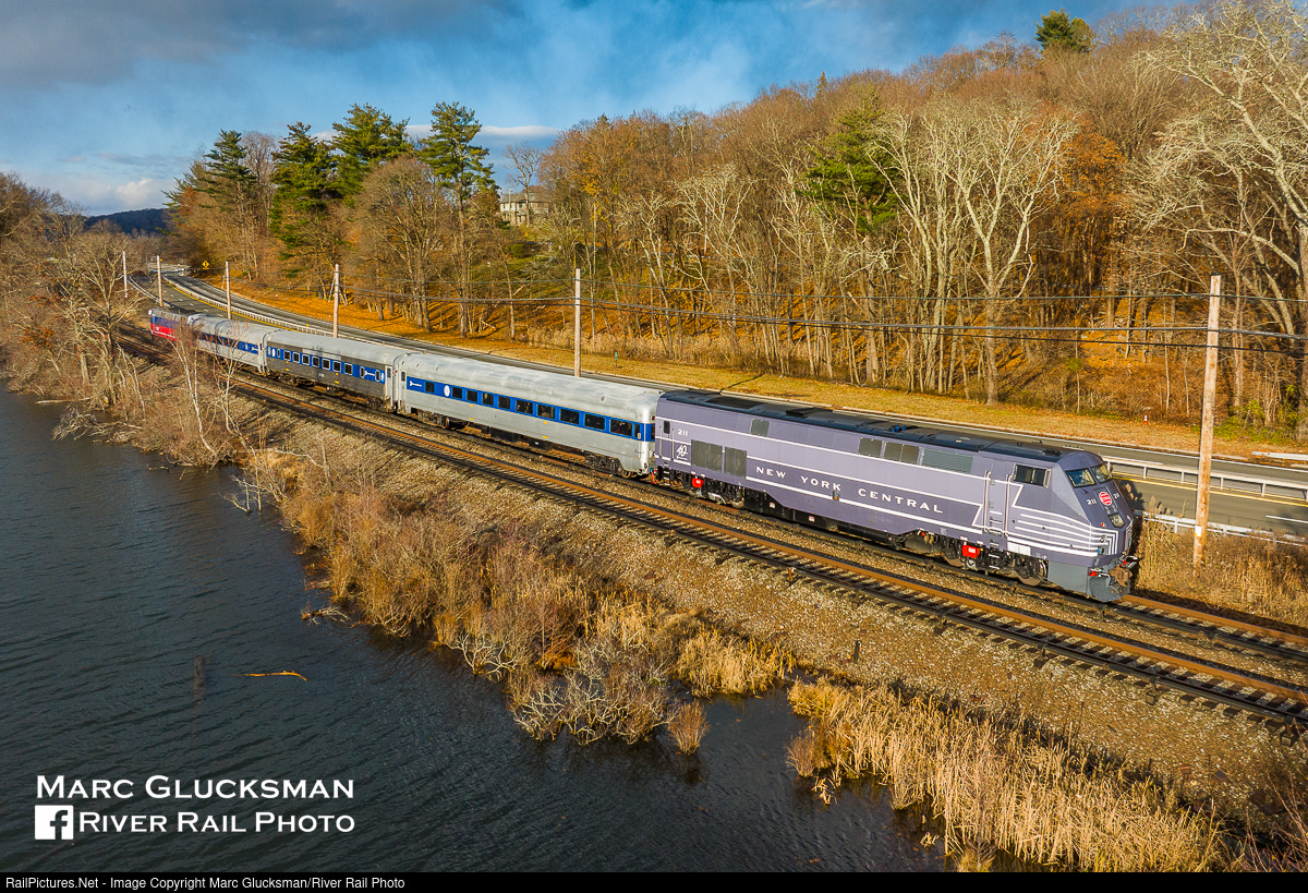 | Water Level On The Harlem. MTA Metro-North Railroad 211 (New York Central/40th Anniversary) held the markers on day one of the Employee Holiday Train on November 28, 2023. One of the cars is former New York Central and the other two former Lackawanna Railroad. The train is on the way to its next stop in Brewster, New York. |