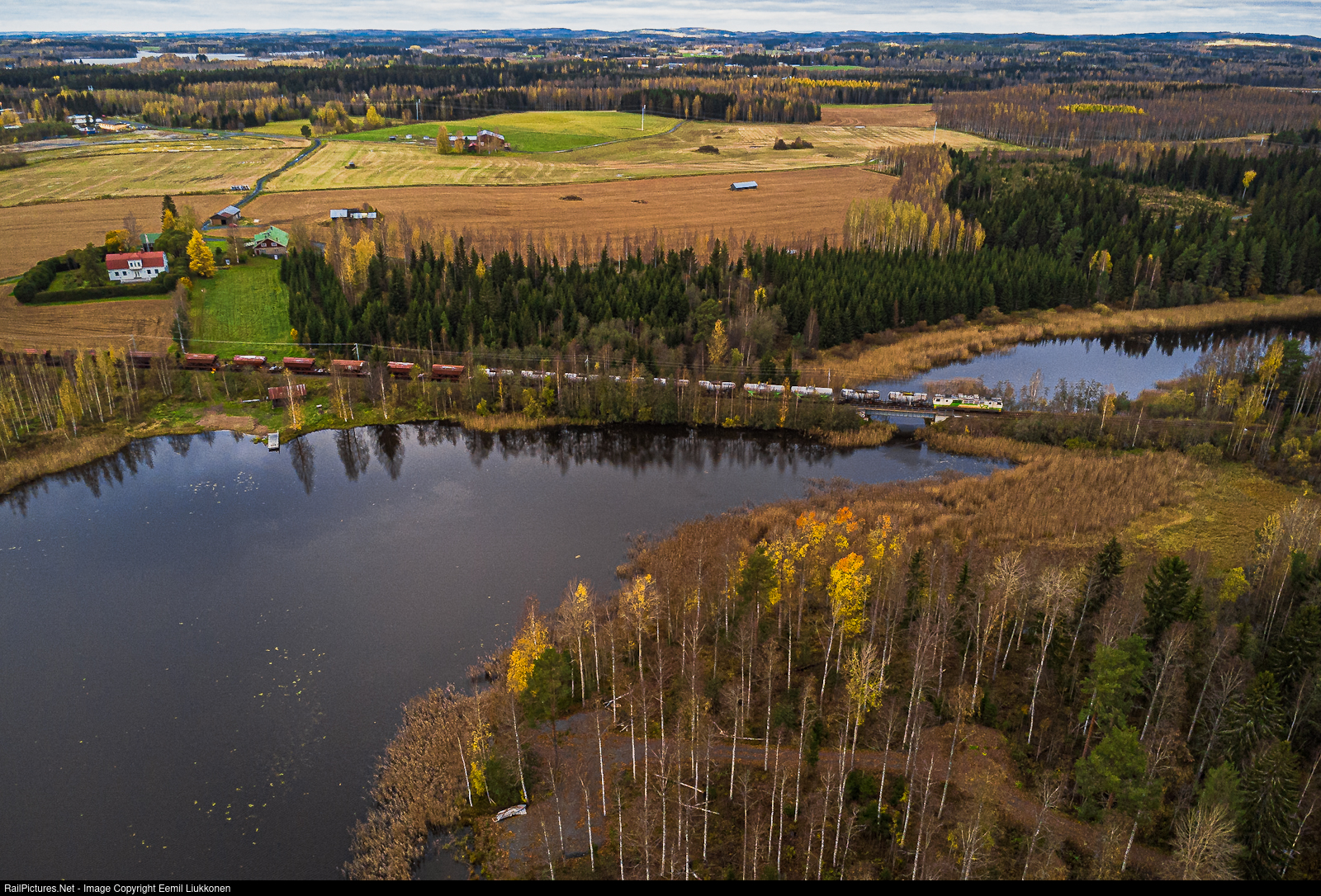 | Empty freight train hauled by the class Sr1 electric locomotive is on its final stretch before arriving at Yara's factory in Ruokosuo. |