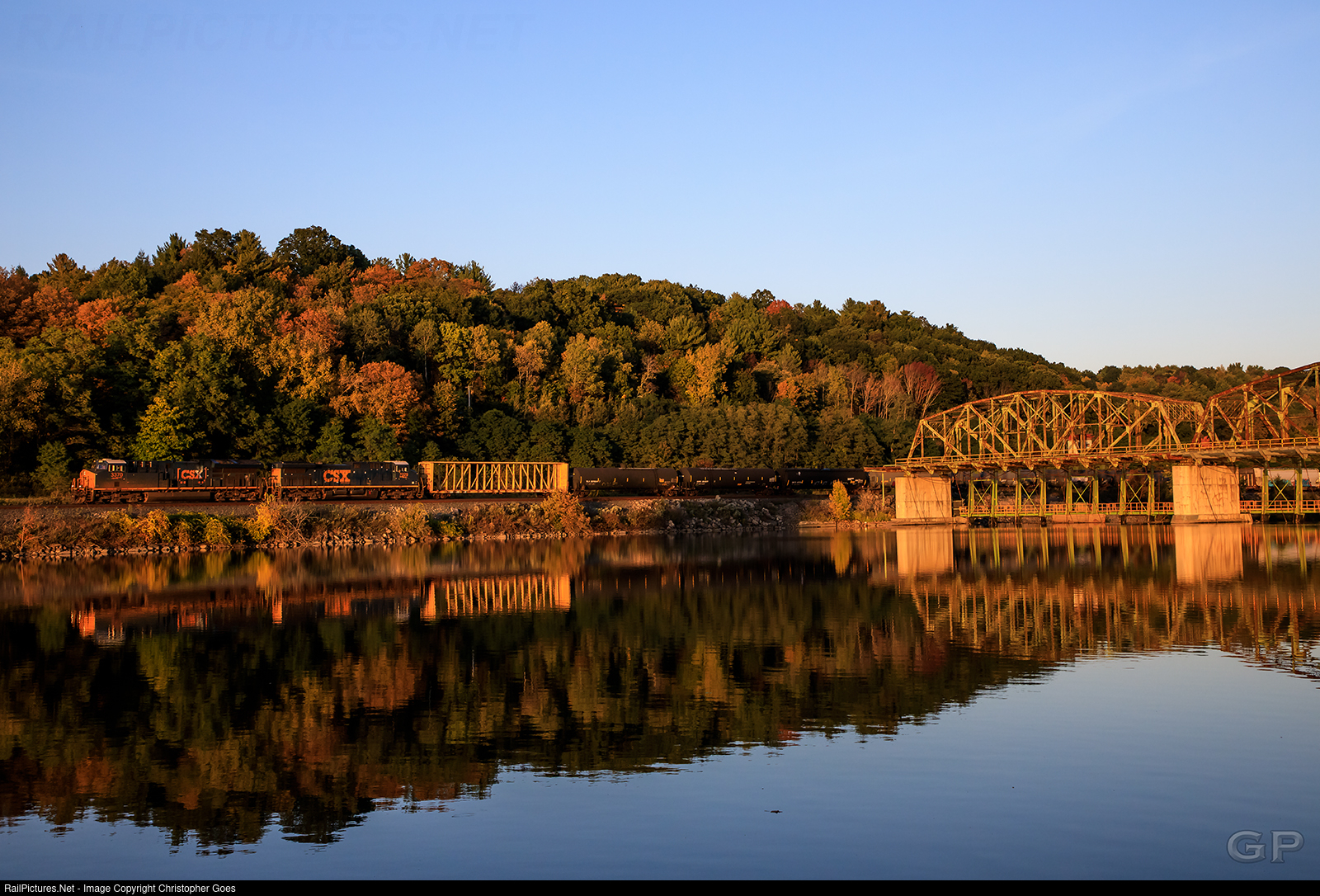 In the early fall, CSX 3370 & 7029 pull a westbound manifest into the sunset rolling by Erie Canal Lock 10 approaching CP-173 on a rather warm early October evening.