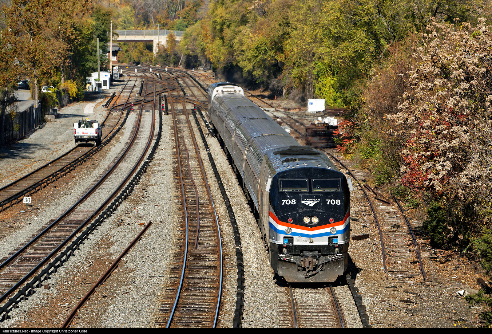 | Amtrak Empire Service train 236 arriving at Croton-on-Hudson. A structural problem with a building over the tracks in New York City caused Amtrak trains to end their trips at the Croton-Harmon station. 236 is just about at the Croton-Harmon station and will be reversing direction to head back north to Albany. |