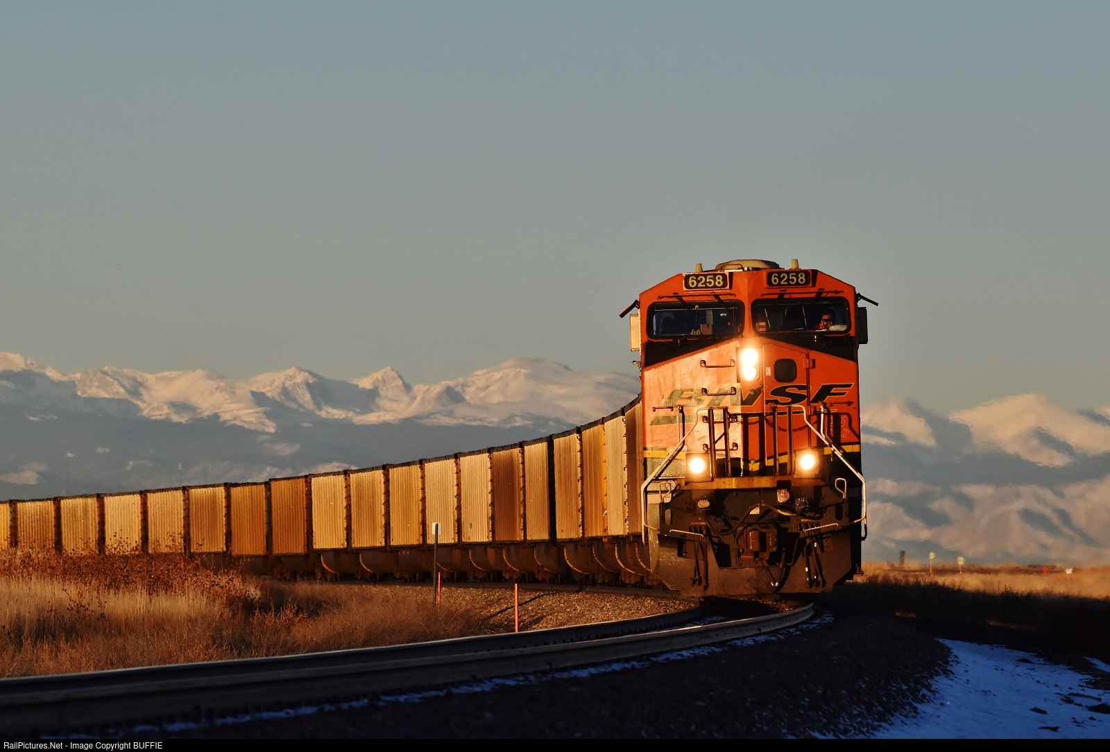 BNSF 6258 (ES44AC) runs an empty coal towards Keenesburg, Colorado and into a golden sunrise.