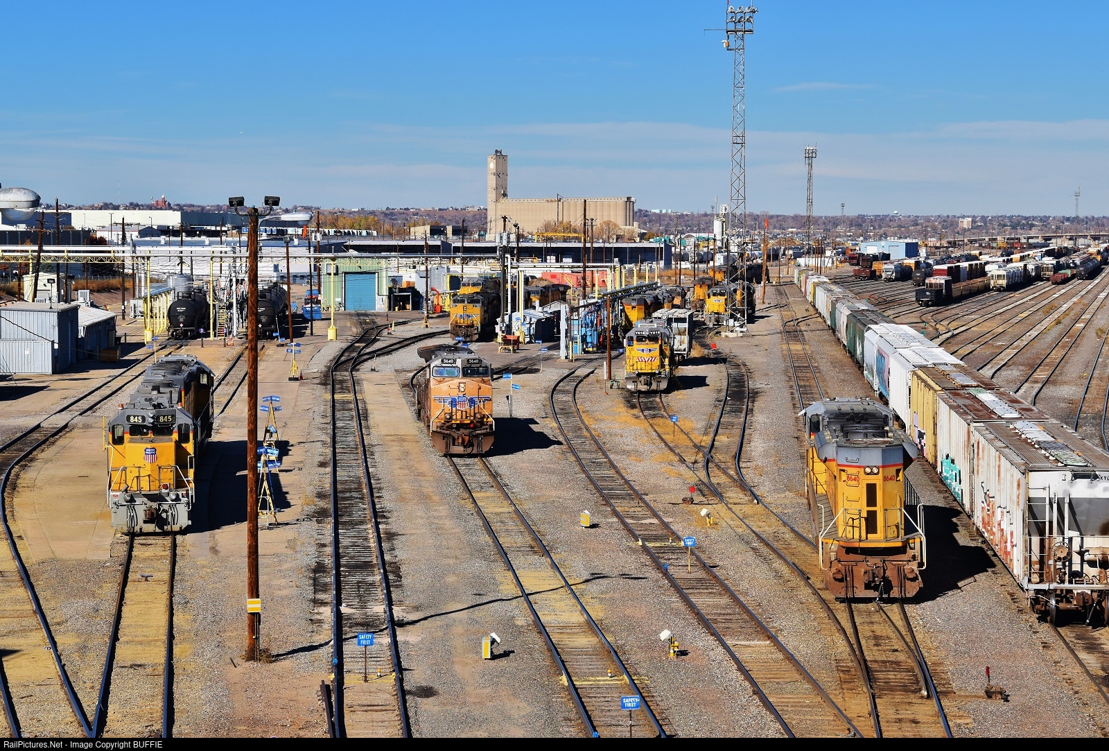 UP 5640 (ES44AC) joins a mix of light and heavy power in the Union Pacific's North Yard in Denver, Colorado.