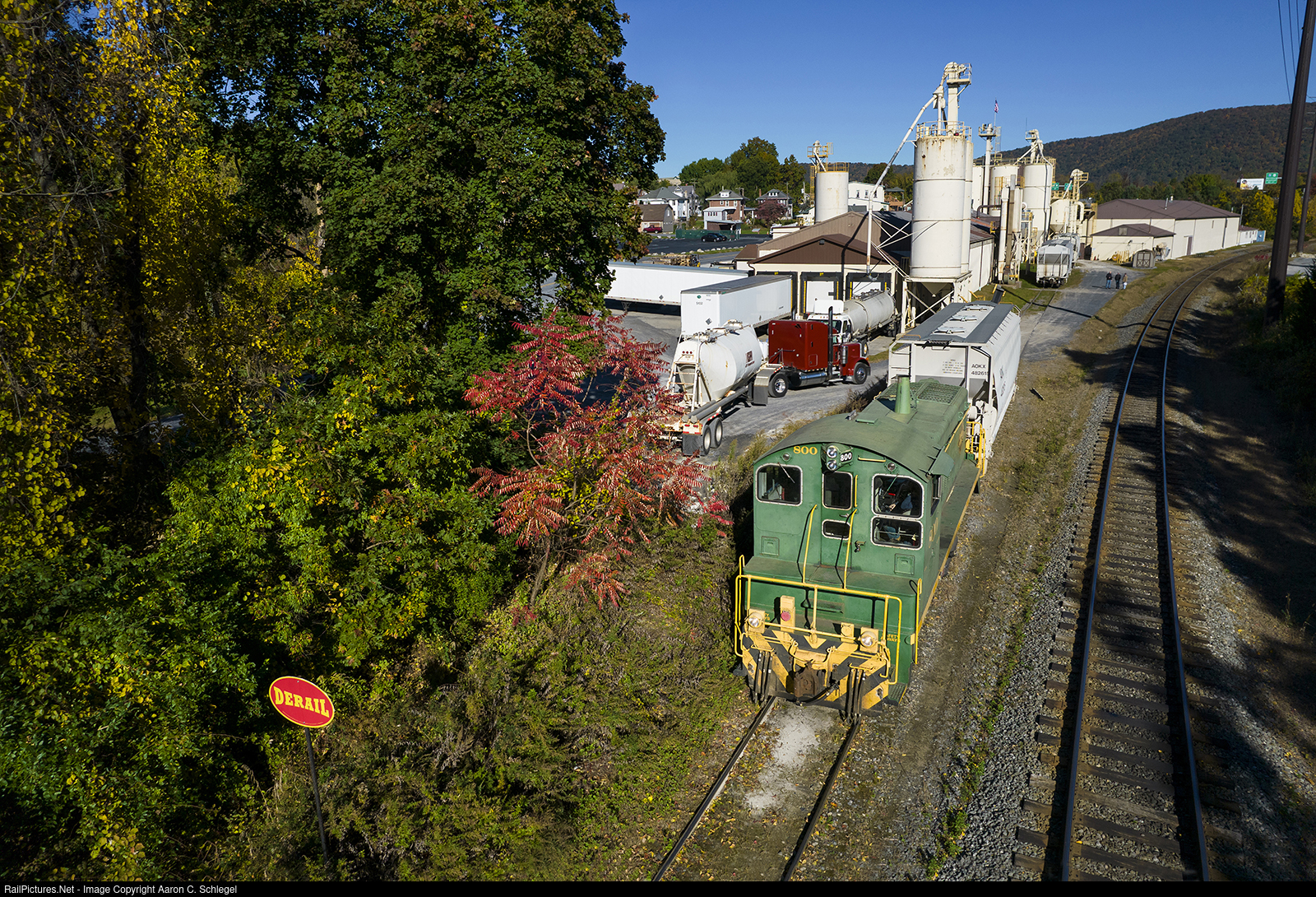Built in June of 1952 as Delaware Lackawanna & Western 509 the RBMN 800 spots a car at Hartz Concrete. Hartz is in Hamburg just south of the Reading and Northern home office in Port Clinton.