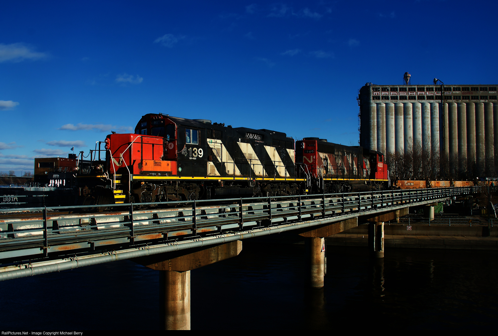 CN 4139 & CN 4800 are inbound towards the Port of Montreal with baretables.