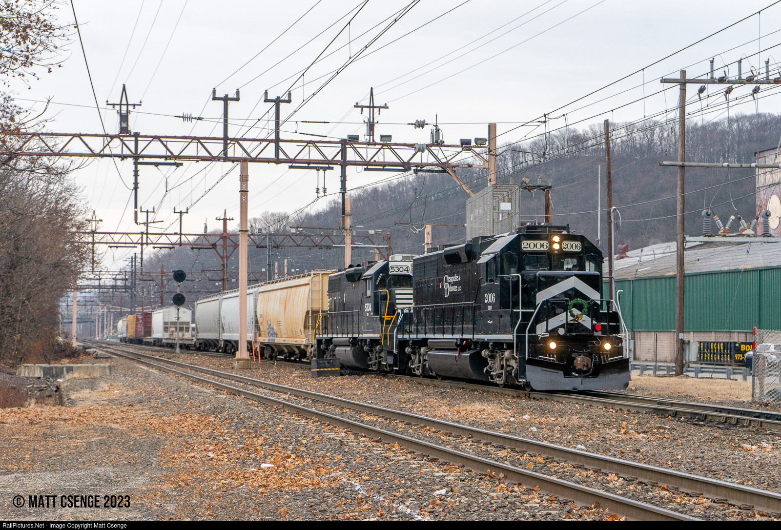 Dover & Rockaway River (DRRV) GP38-2 no. 2006 is seen leading Dover & Delaware River train RP2 at Dover Yard. Both the Dover & Delaware River and the Dover & Rockaway River are wholly-owned subsidiaries of Chesapeake & Delaware, LLC. |