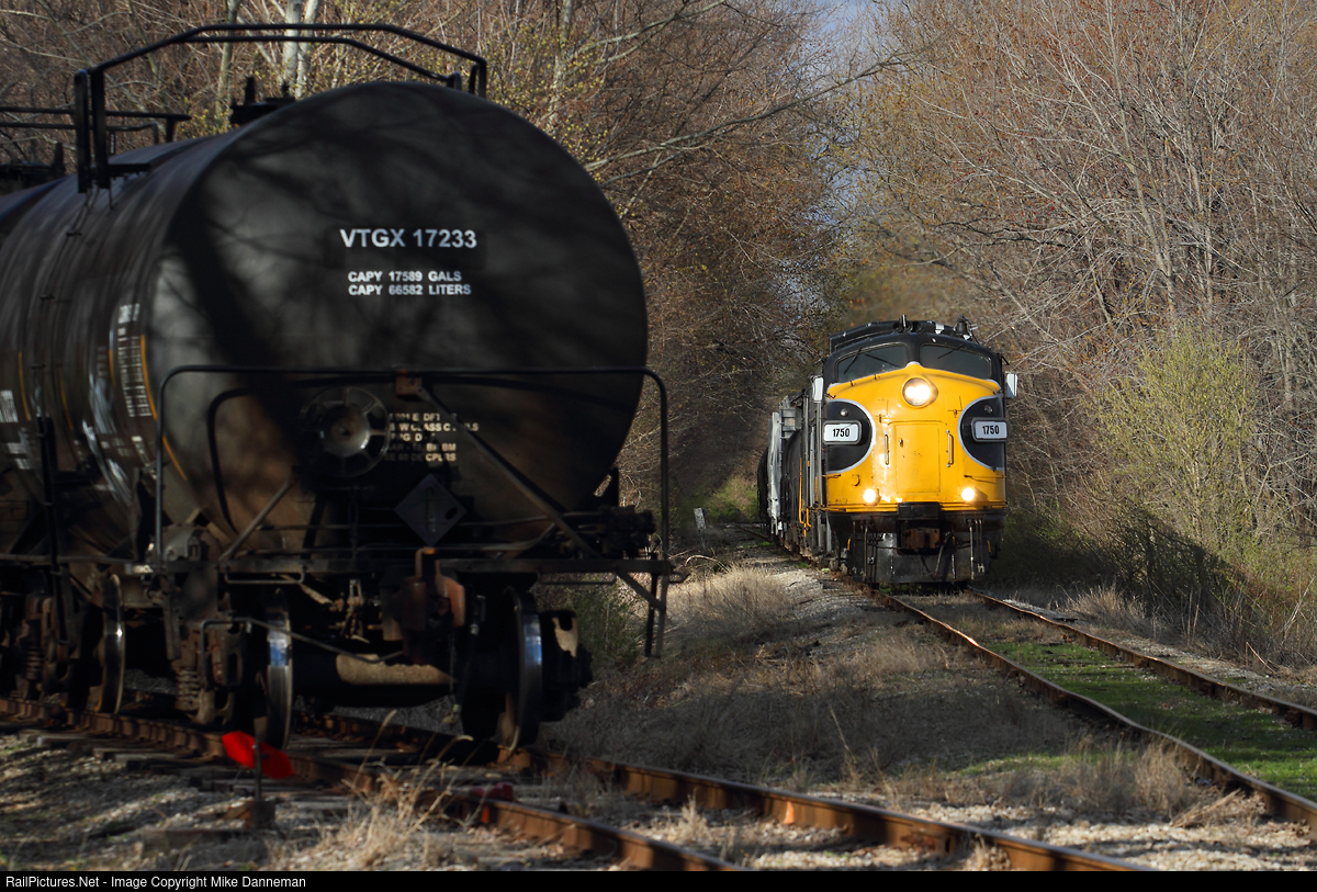 A westbound Keokuk Junction Railway freight passes milepost 120 between Sommer/Hollis and Kolbe, Illinois, on April 7, 2016. Two EMD FP9s (Nos. 1750 and 1752) and GP20 No. 2003 power the train of “hot cars” picked up at an interchange yard at Bartonville and are returning to Kolbe station (located near Mapleton) on this former TP&W line.