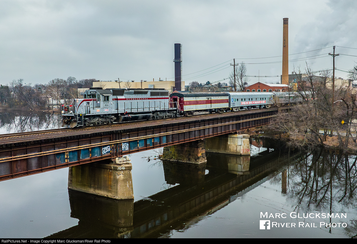 Silver And Maroon In 2023. "Every year since 2009 (except for 2020), special trains have operated on the first two weekends of December in northern New Jersey and southern New York to collect donated toys for the U.S. Marine Corps Reserve Toys for Tots Foundation" explains Operation Toy Train website about the organization's mission to travel across New York and New Jersey during the holiday season. On Saturday, December 9, 2023, New York, Susquehanna, and Western Railway 3024 (ex-NS 3553, exx-HLCX 7200, née-BN 7200, SD40-2, EMD, 10/1979, "Silver and Maroon") made its Toys For Tots Train debut. Perhaps the most sought after leader on the NYS&W, this unit was repainted earlier in 2023 into an older paint scheme of the railroad. As with last year's train, the Erie Turntable/Port Jervis Transportation Museum and Dining Car Society participated. At the end of the day, the group announced that they had collected over 20,000 toys, which is the real purpose of the train.
