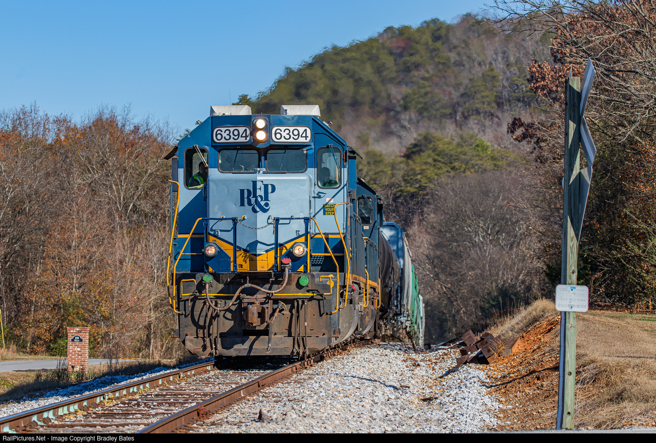 | CSXT GP40-2 #6394 (former RF&P #142) is once again wearing the RF&P paint scheme on the nose of the locomotive, only this time in a new and more modern form. No clue who painted it, but it sure looks good! The 6394 is seen in this image leading CSX local L810-11 as it lugs it's train up a grade at Aragon, GA. on their way to work Rockmart and finally Cedartown where they'll finish their day. |