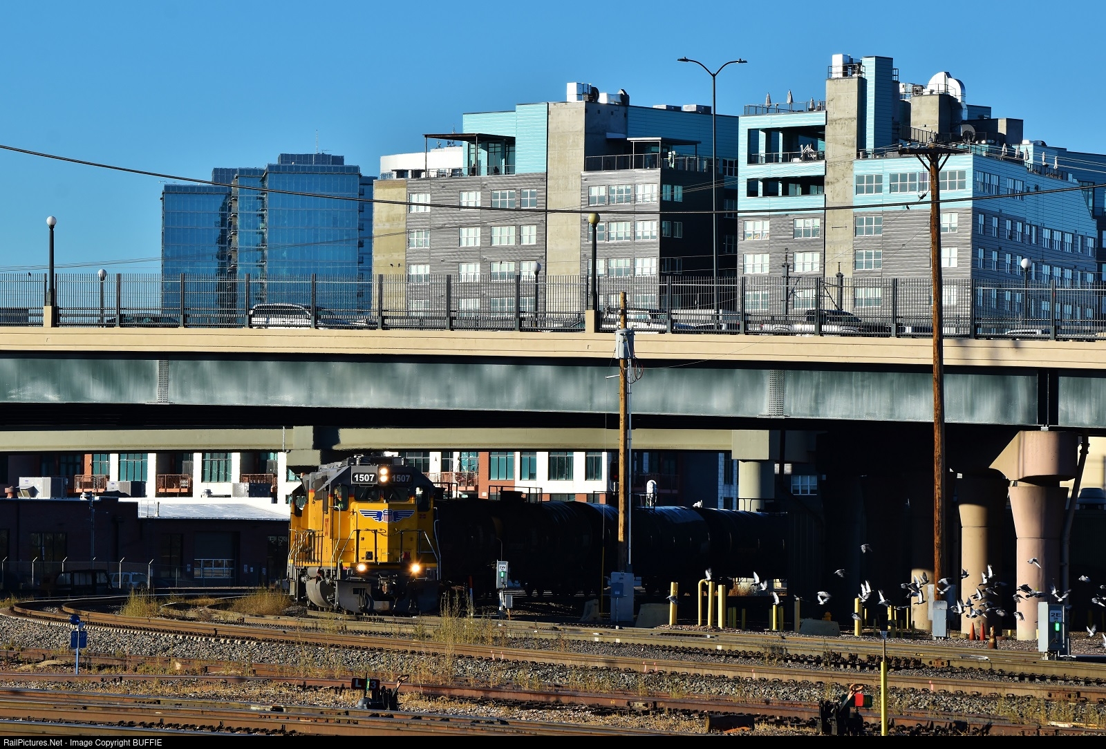 UP 1507 (GP40M) leads a freight towards the BNSF yard in Denver, Colorado.