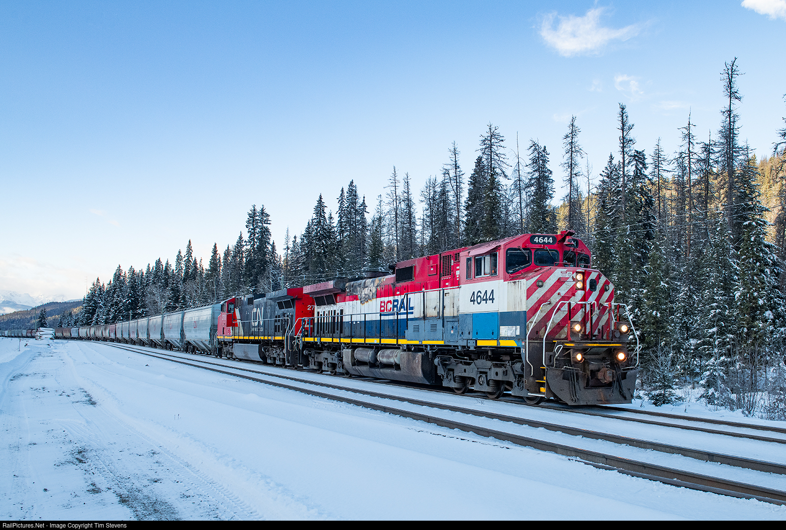 BCOL C44-9WL 4644 leads M310's train towards Jasper, passing Mile 8 of the Albreda Sub.