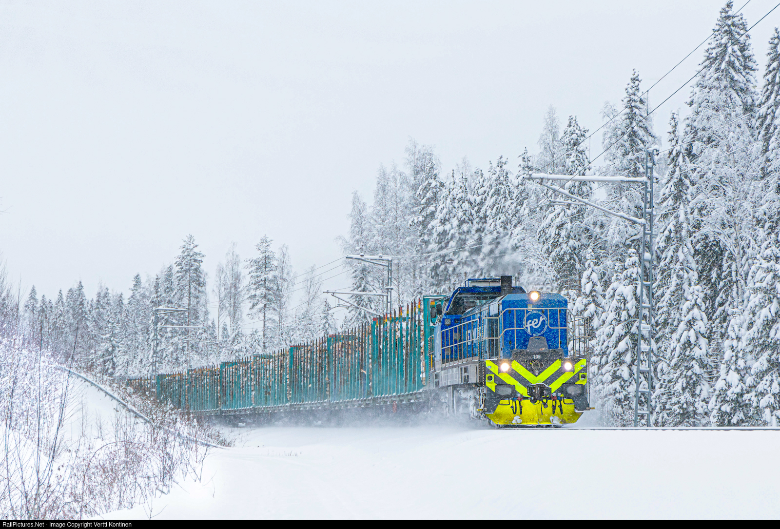 | Fenniarail timber train from Suolahti to Kouvola clearing snow off the line as the first train after heavy snowfall. Train drivers and dispatchers are on strike, but Fenniarail has been able to operate it's trains without disruptions. Dispatcher services have been provided on by Fintraffic raide supervisors |