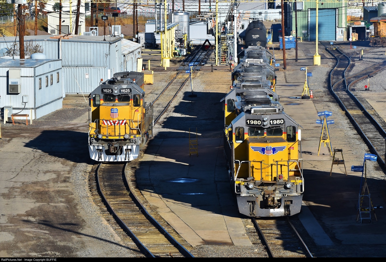 UP 1980 (GP38N) joins other light power in the North Yard as they wait for their chance to sort freight cars.