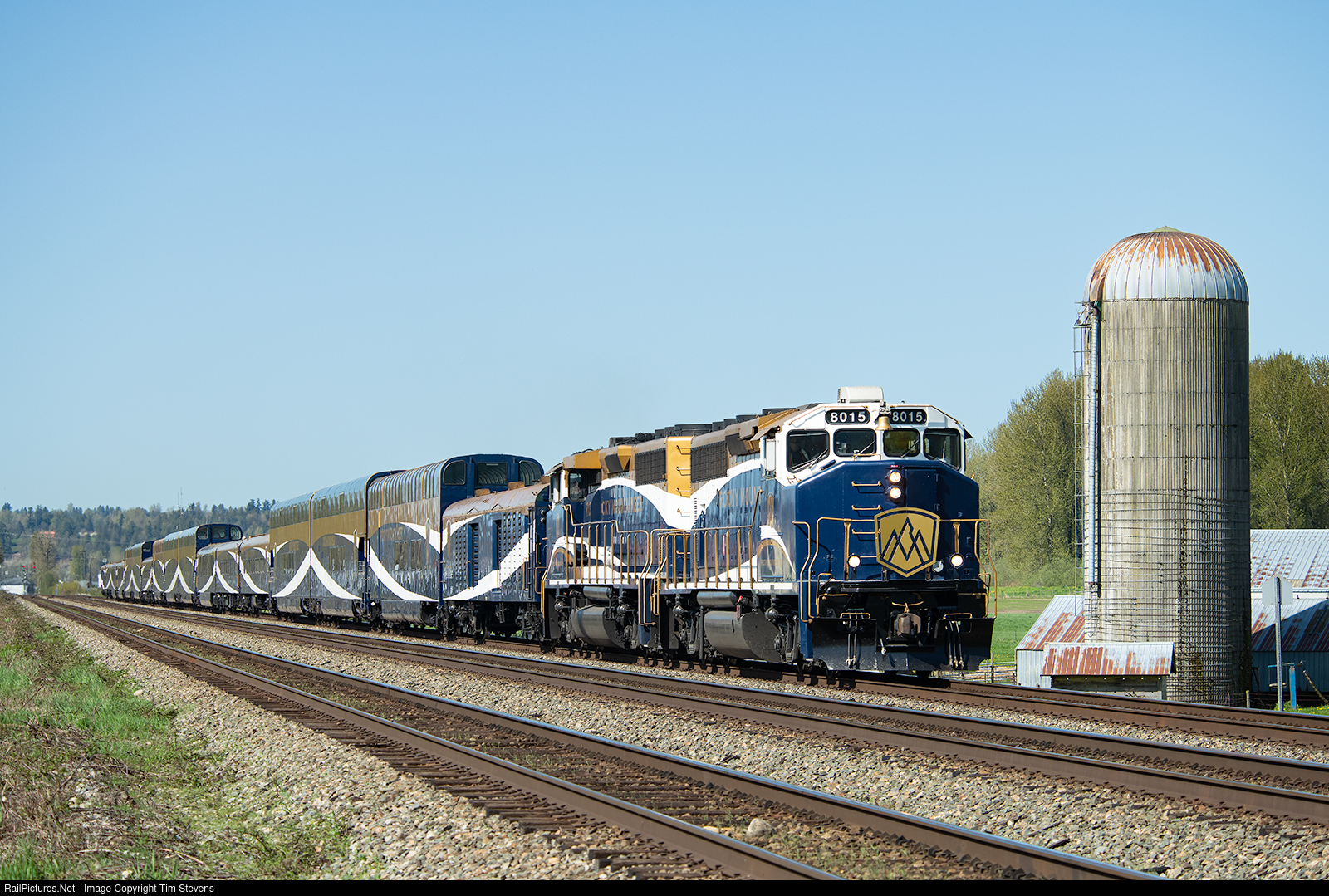 RailPictures.Net Photo: RMRX 8015 Rocky Mountaineer Railtours EMD GP40-2W at Matsqui, British Columbia, Canada by Tim Stevens