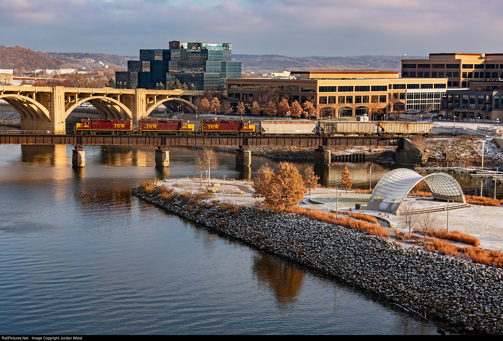 The TCW St. Paul turn heads over the Robert Street bridge with a whopping 3 cars to boot.