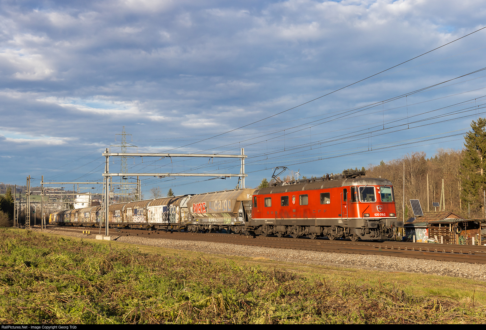 | Re 620 # 018 (Re 6/6 # 11618) "Dübendorf" of the SBB pulls the freight train 63180 from St.Margrethen via Romanshorn VL-Winterthur-Kloten-Regensdorf to the Limmattal shunting yard (RBL), between Winterthur and Kemptthal. |