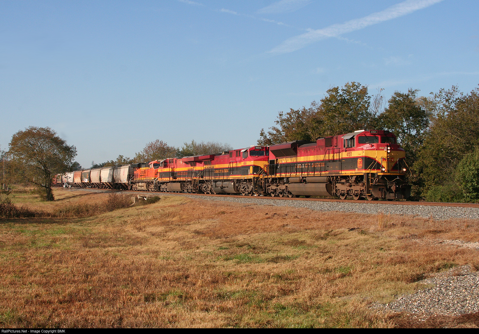 KCS 4151 leads an empty grain northbound through Poteau Oklahoma.