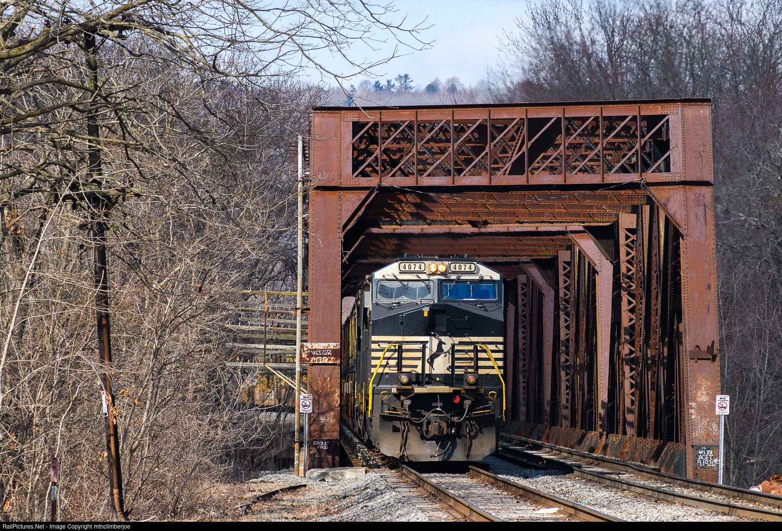 | Norfolk Southern manifest freight 11R is nearing the end of its run as it makes its way across the Susquehanna River and slowly enters the yard the Binghamton, New York. At the time, this train was picked up from the Pan Am Southern in Mechanicville for a run down the NS Freight Line to Binghamton's East Yard. |