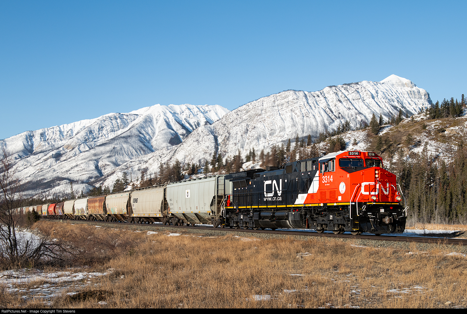 RailPictures.Net Photo: CN 3314 Canadian National Railway GE AC44C6M at Snaring, Alberta, Canada by Tim Stevens