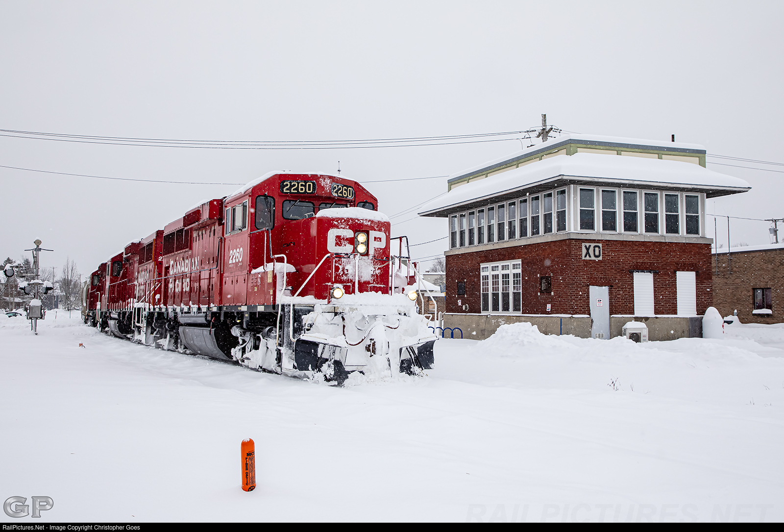 | During one of the heaviest December snowfalls in the New York Capital Region, D45 dashes through the snow as it makes the return trip to Saratoga passing the XO Tower at former D&H B&M yard. |