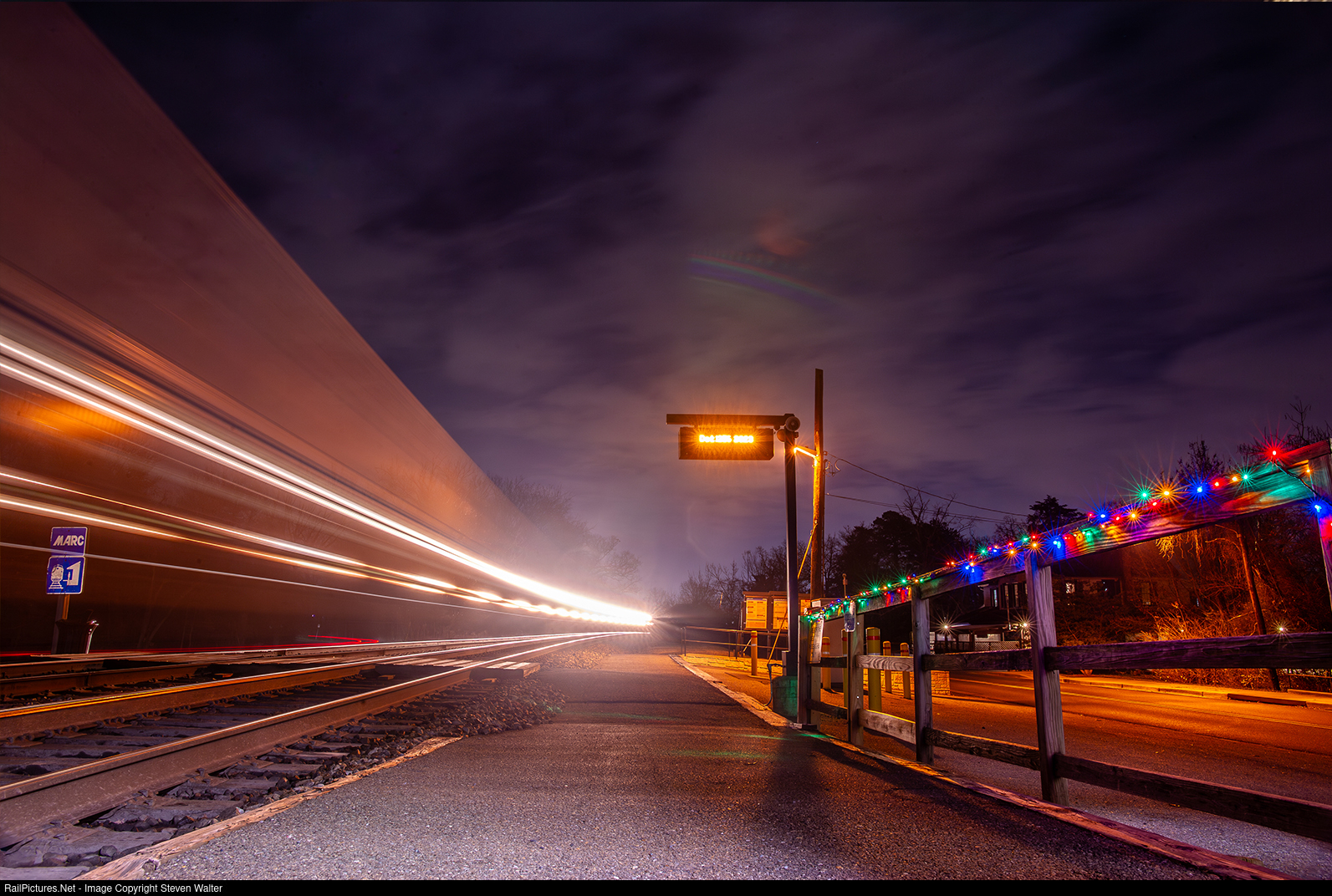 During the late night hours of Christmas, CSXT X41625 passes through Washington Grove, Maryland.