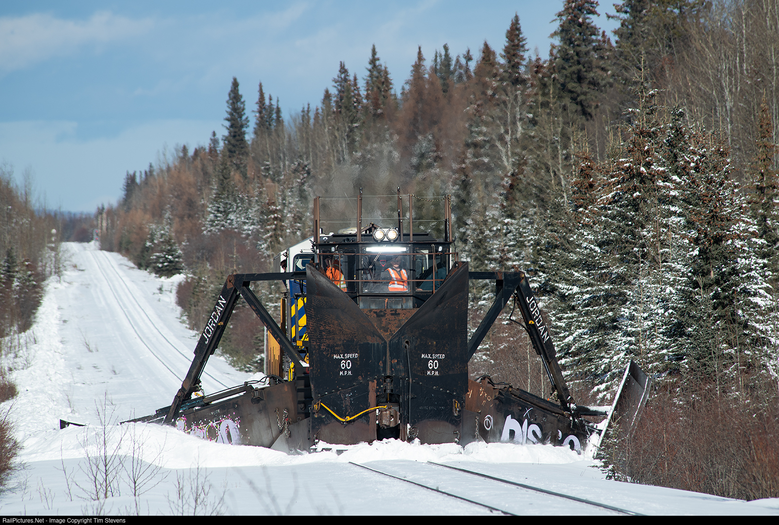 CN ES44AC 3981 shoves a Jordan Spreader west on the Alberta Coal Branch at Erith.