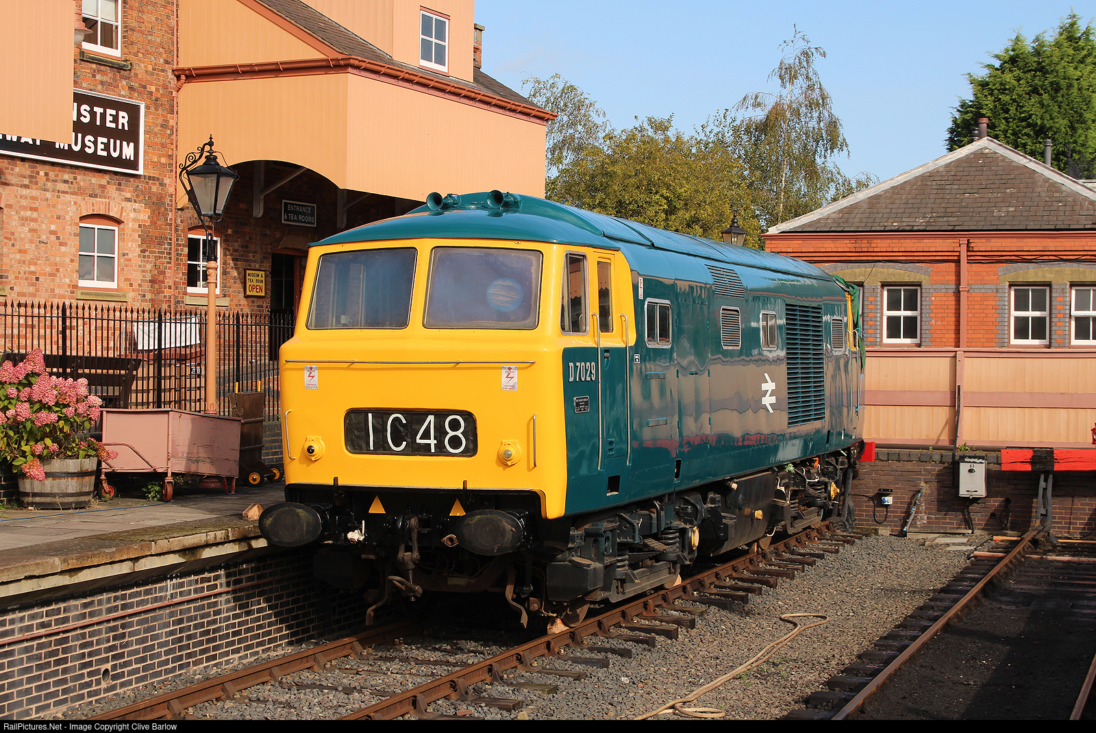 | Diesel Traction Group preserved ex-British Rail class 35 "Hymek" D7029 stands at Kidderminster Town station on the Severn Valley Railway heritage line whilst on display during the autumn diesel gala, 29th September 2023. D7029 is in the long process of being overhauled so that it can be returned to traffic. |