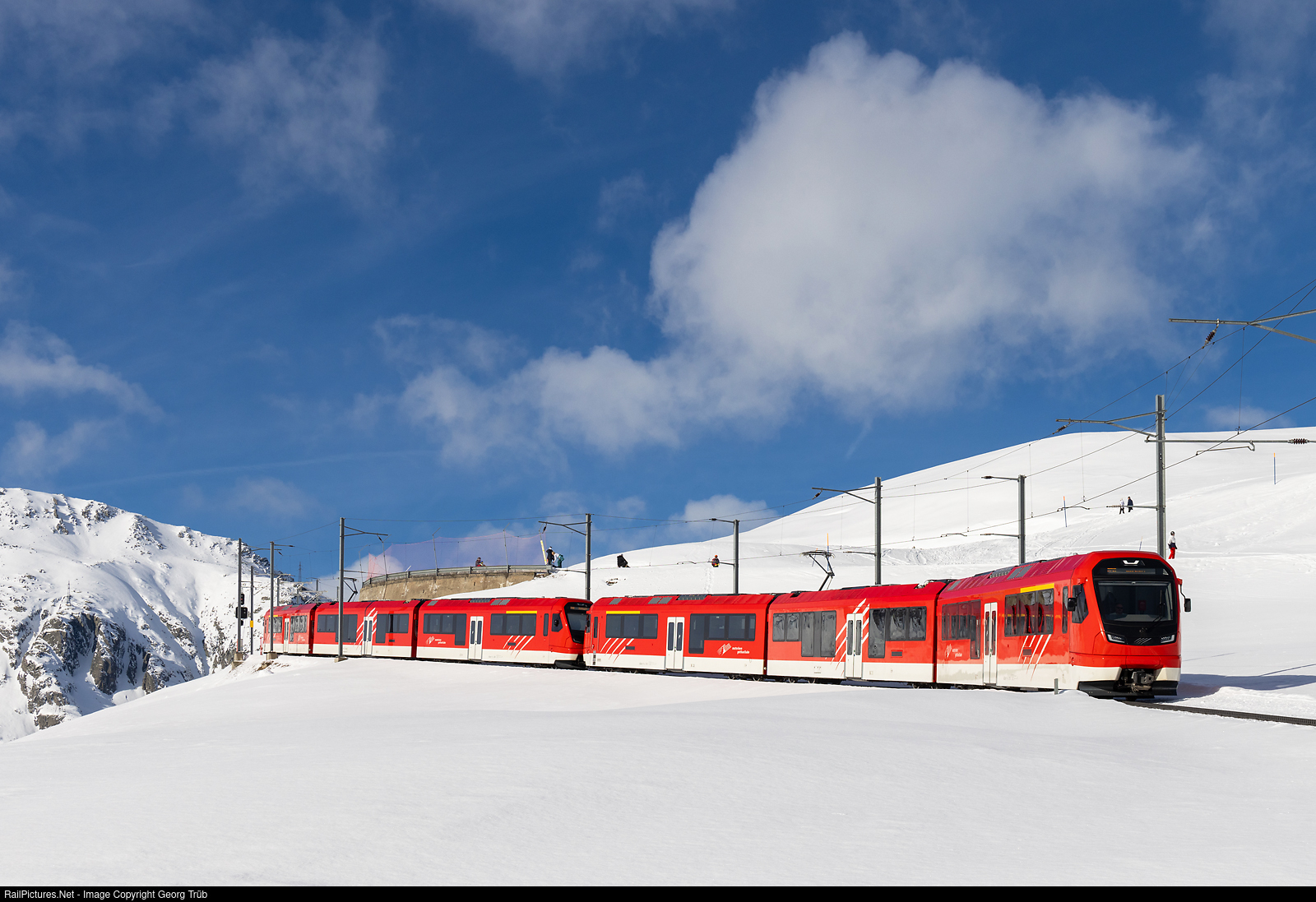 Since change of timetable on december 10, 2023, on the line of the Matterhorn-Gotthard-Bahn from Andermatt over the Oberalp pass to Disentis, the new "Orion" trains, built by StadlerRail, have taken over all regional services. ABeh 8/12 # 310 and # 309 in multiple control are running the R45 service 831 from Disentis to Andermatt, below Nätschen.